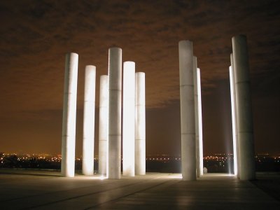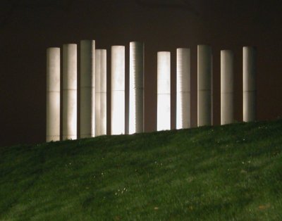 ![]() La visite se termine près des 12 colonnes, qui ont été financées par 12 entreprises Cergyssoises à la création de l'Axe Majeur. |