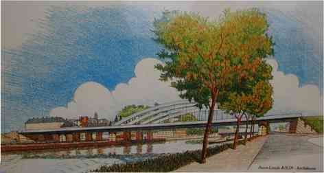 Ce dessus : Projet final. (Vue aval depuis Saint Ouen l'Aumone : Pontoise est à Gauche)