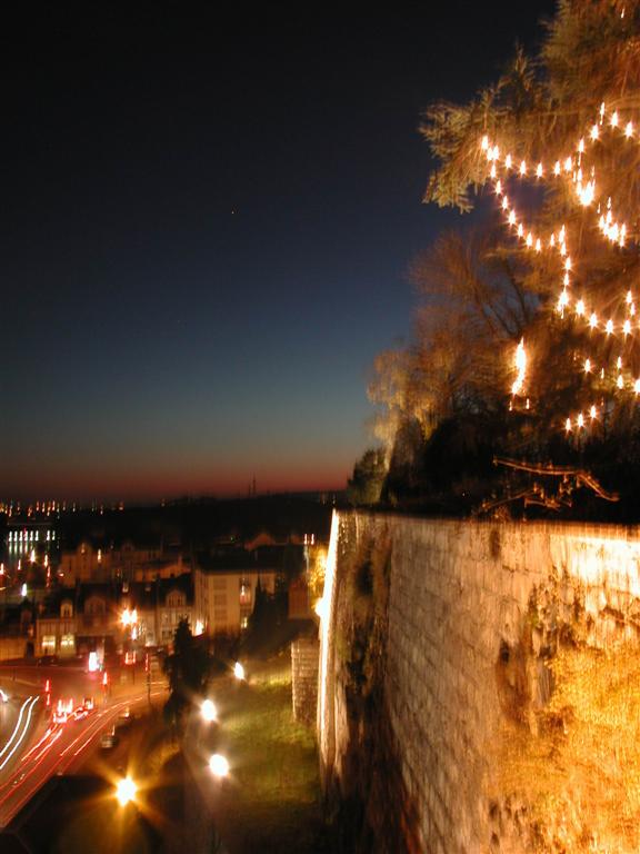 La nuit, depuis les remparts, les voitures laissent leurs traces. (temps de pose : 8 secondes). | ||